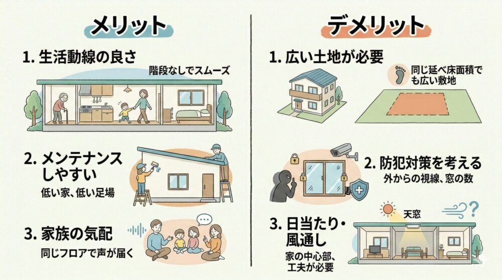 人気の平屋ですが、メリットだけではありません。当然デメリットとなる点も存在します。