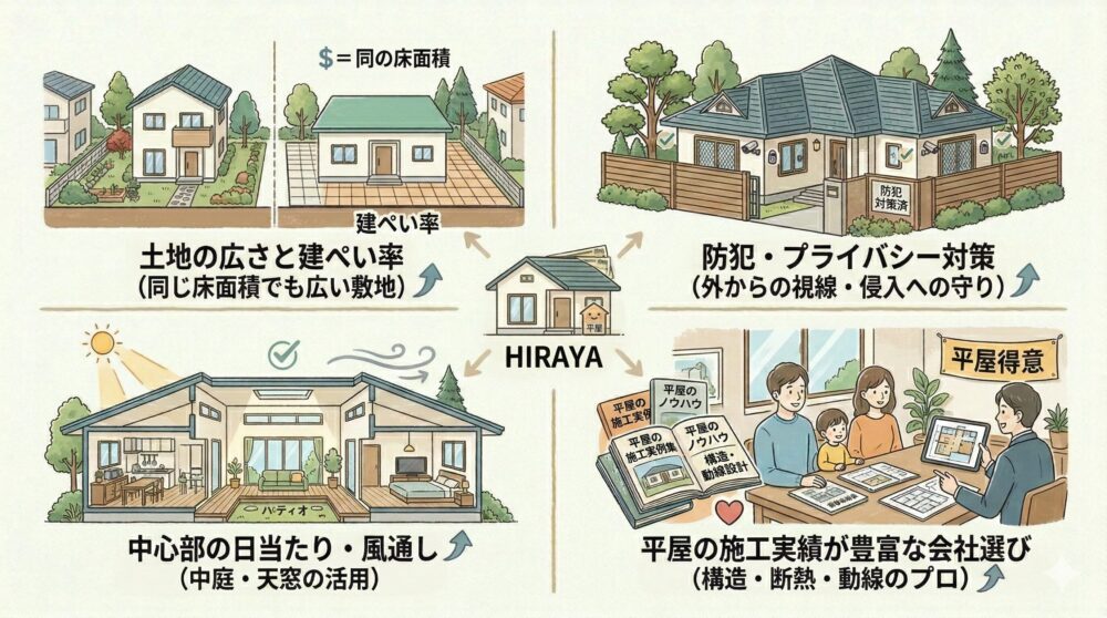後悔しない家づくりのために知っておくべき『平屋の8つの弱点』とその『具体的な回避策』を客観的に解説しています。